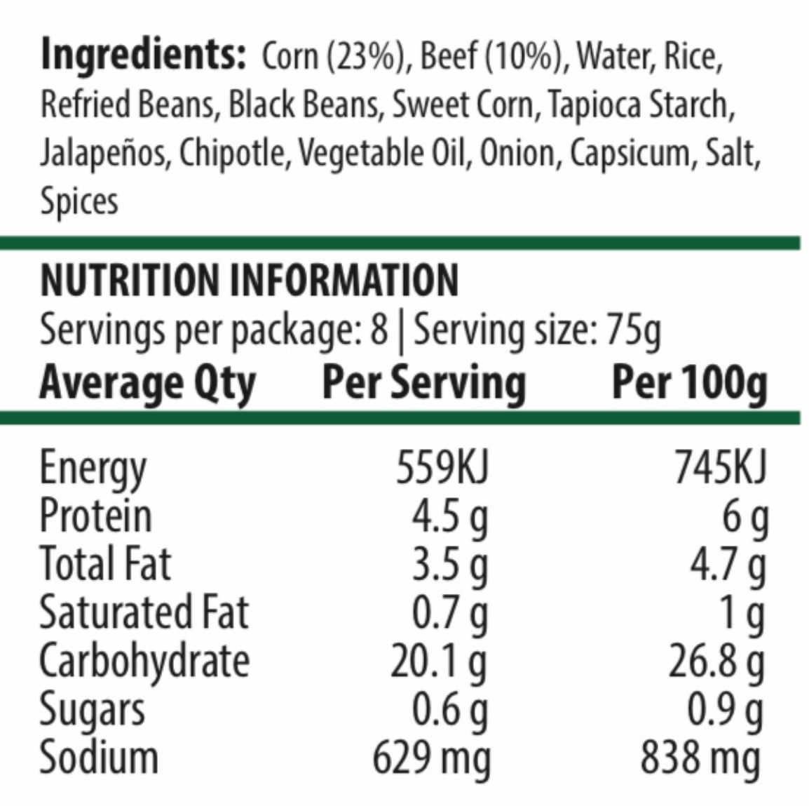 Our Mexican Empanadas are made of a delicious crunchy crust of pure corn, filled with a mixture of refried beans, black beans, pulled beef, rice, jalapeños, Chipotle, sweet corn and spices to obtain a delightful texture and a spicy flavour. Already fried in vegetable oil, you only need to heat them up in an oven/grill or air fryer for 13 to 15 minutes.